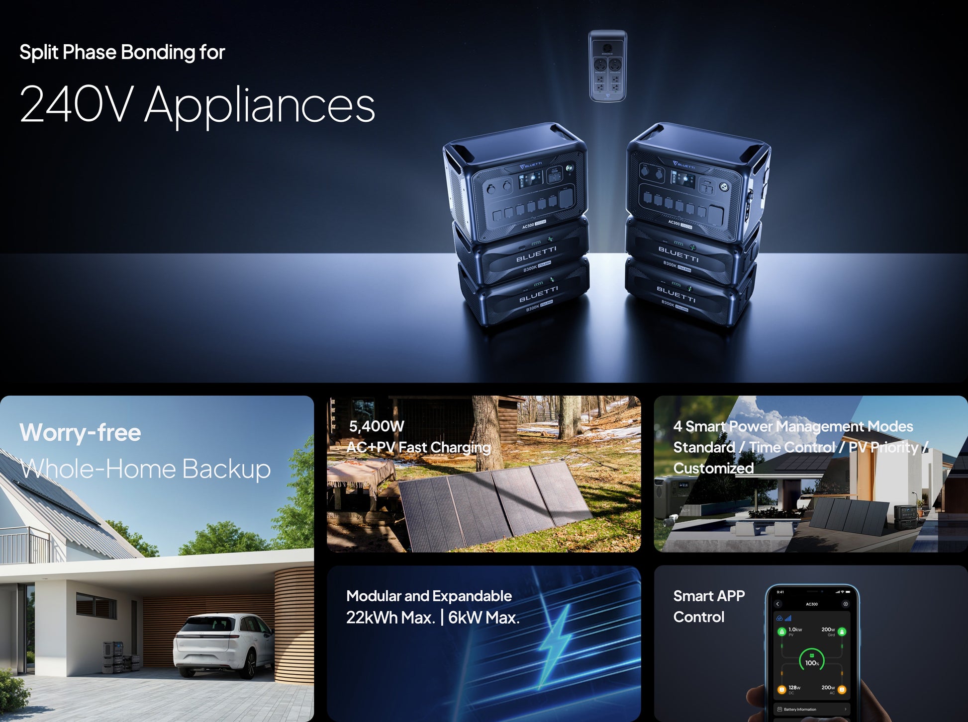 240V Ready: Link two AC300s via BLUETTI P030A Fusion Box for 240V appliances