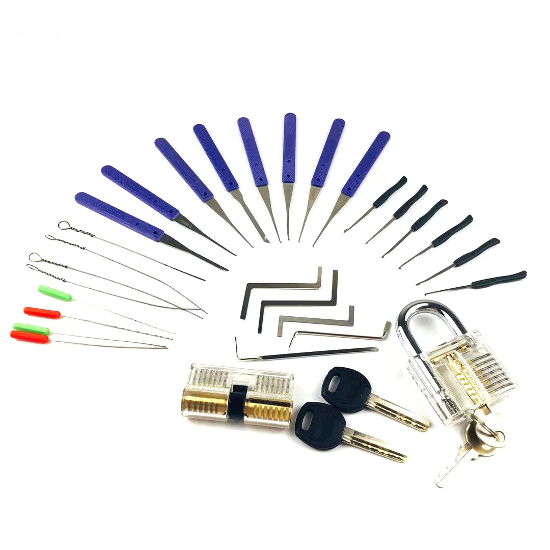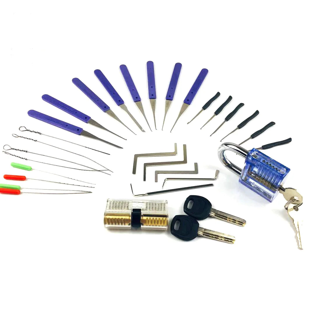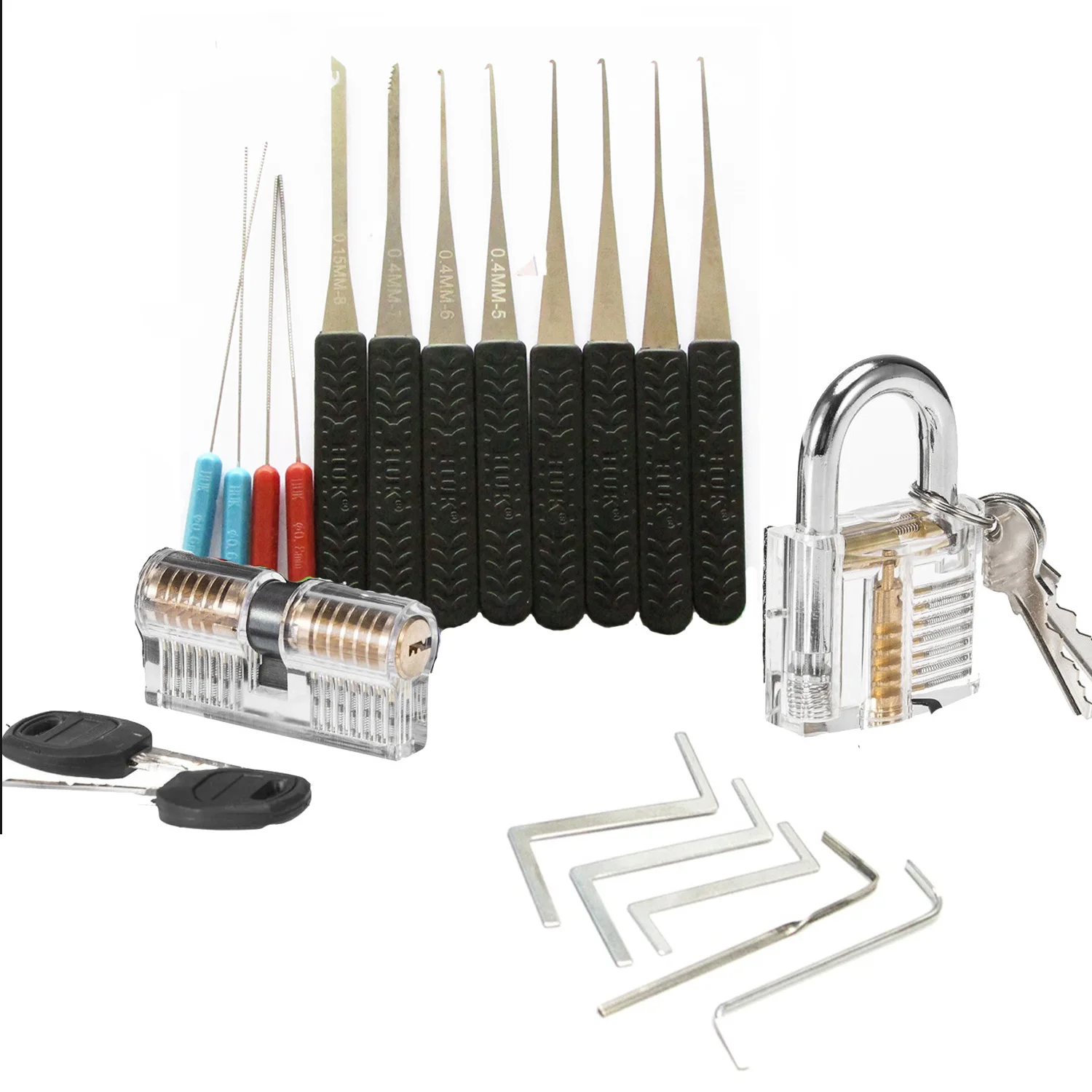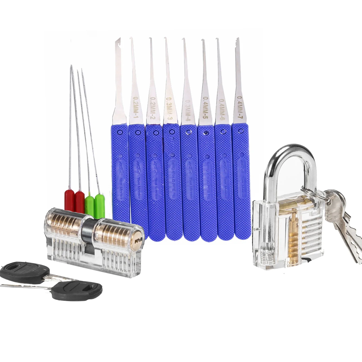 Locksmith Picking Practice Hand Tools Set,2pcs Transparent Locks with Tension Tools,Broken Key Remove Tools with Handle