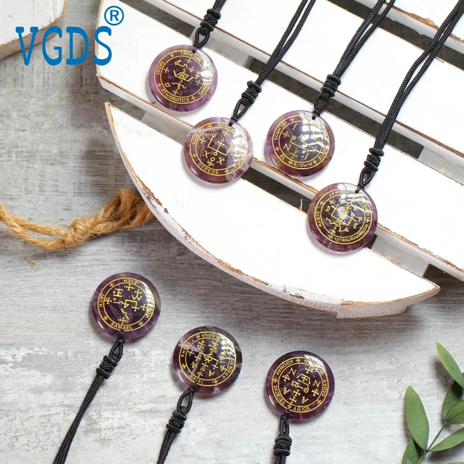 1× Seven Archangels Talisman Pendant (randomized crystal: amethyst or quartz)