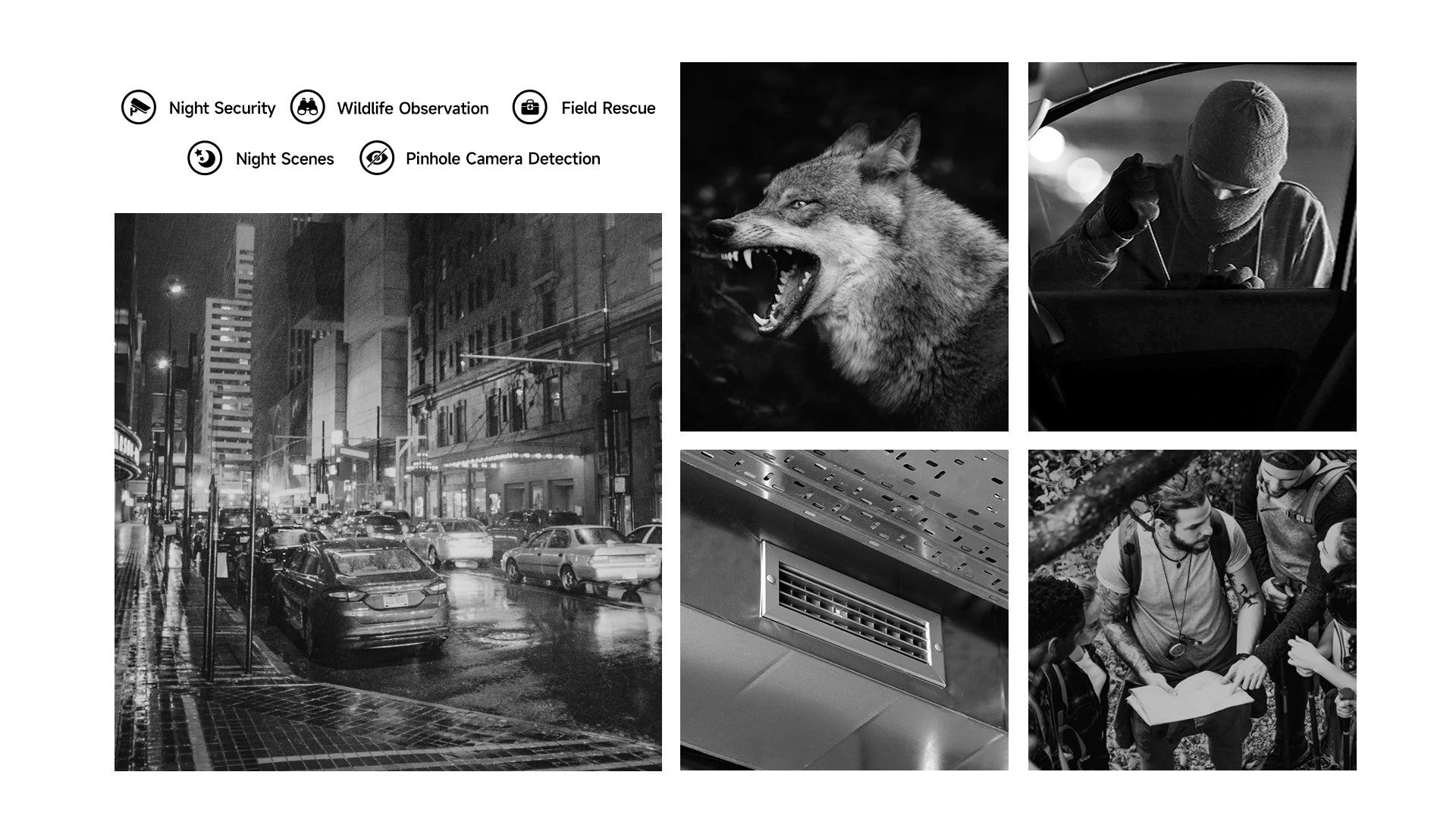 Note: Thermal imaging is calibrated for industrial and outdoor use—ideal for detecting leaks, wildlife, or intruders in low visibility.